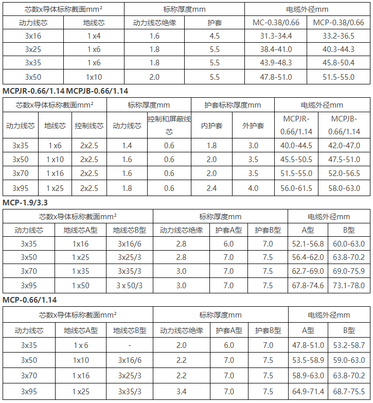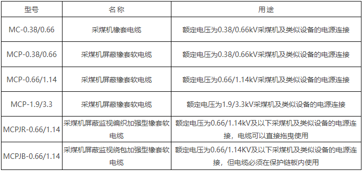 額定電壓1.9/3.3kV及以下采煤機(jī)軟電纜