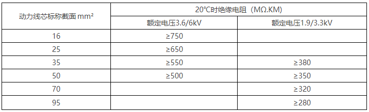 電纜的絕緣電阻符合下表規(guī)定