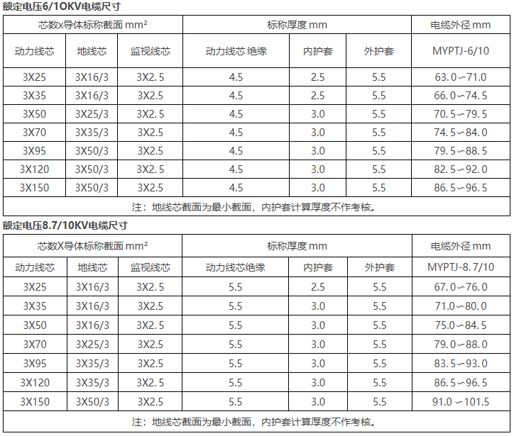 額定電壓(U0/U )分別為3.6/6KV、/10KV和8.7/10KV。